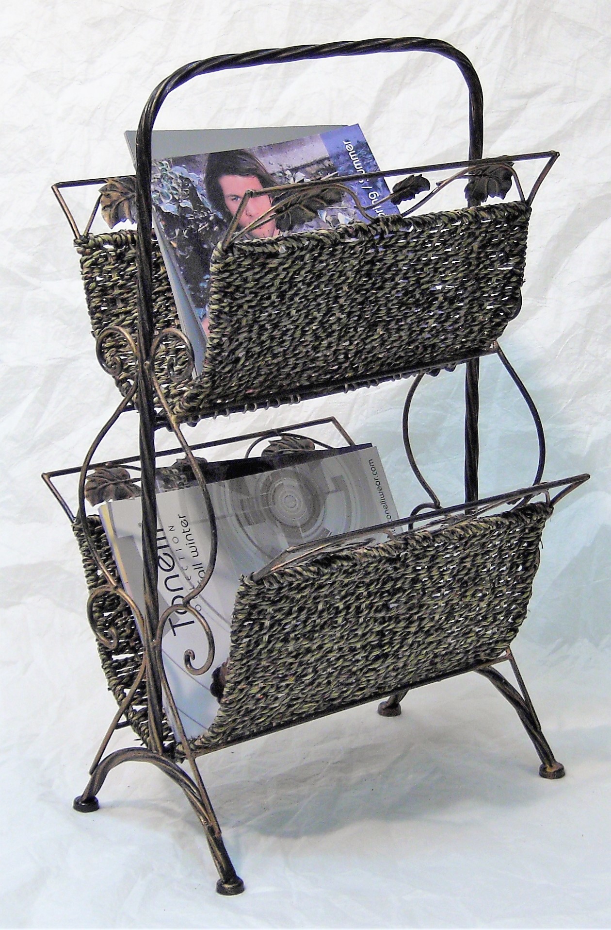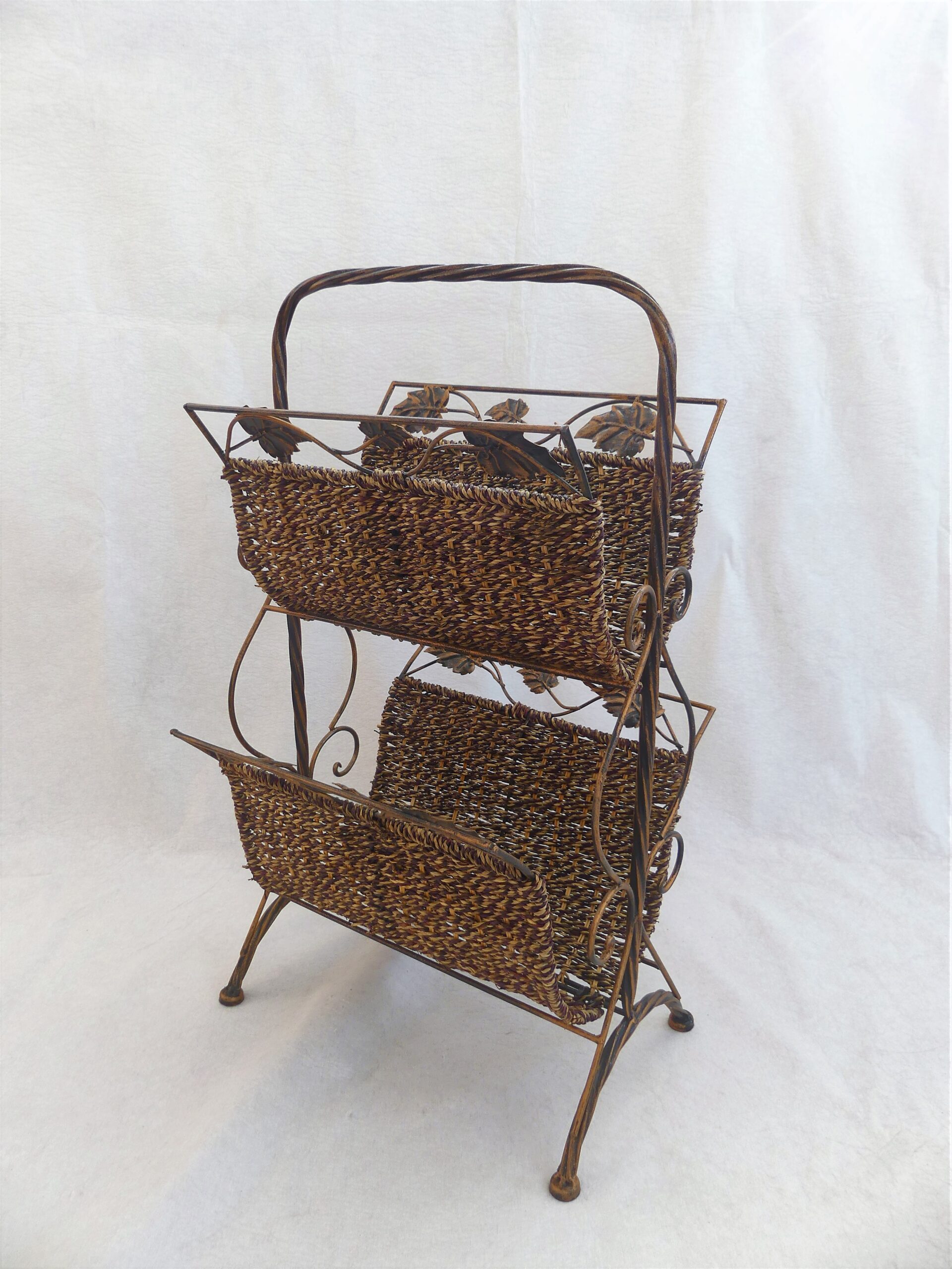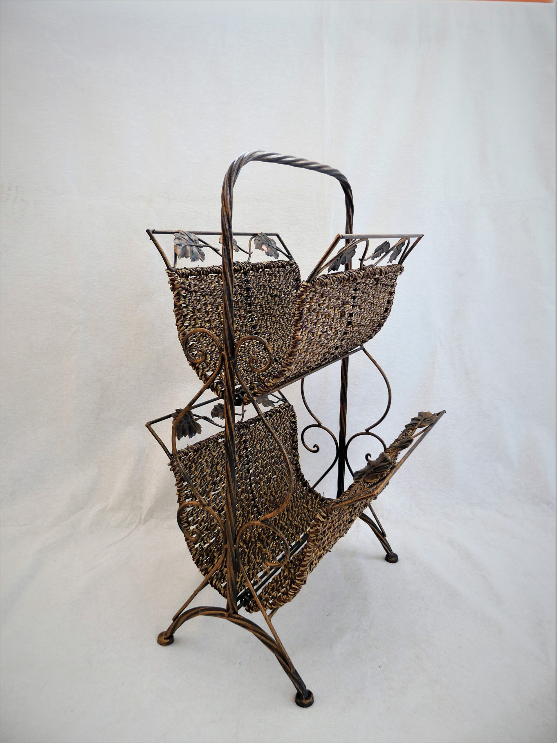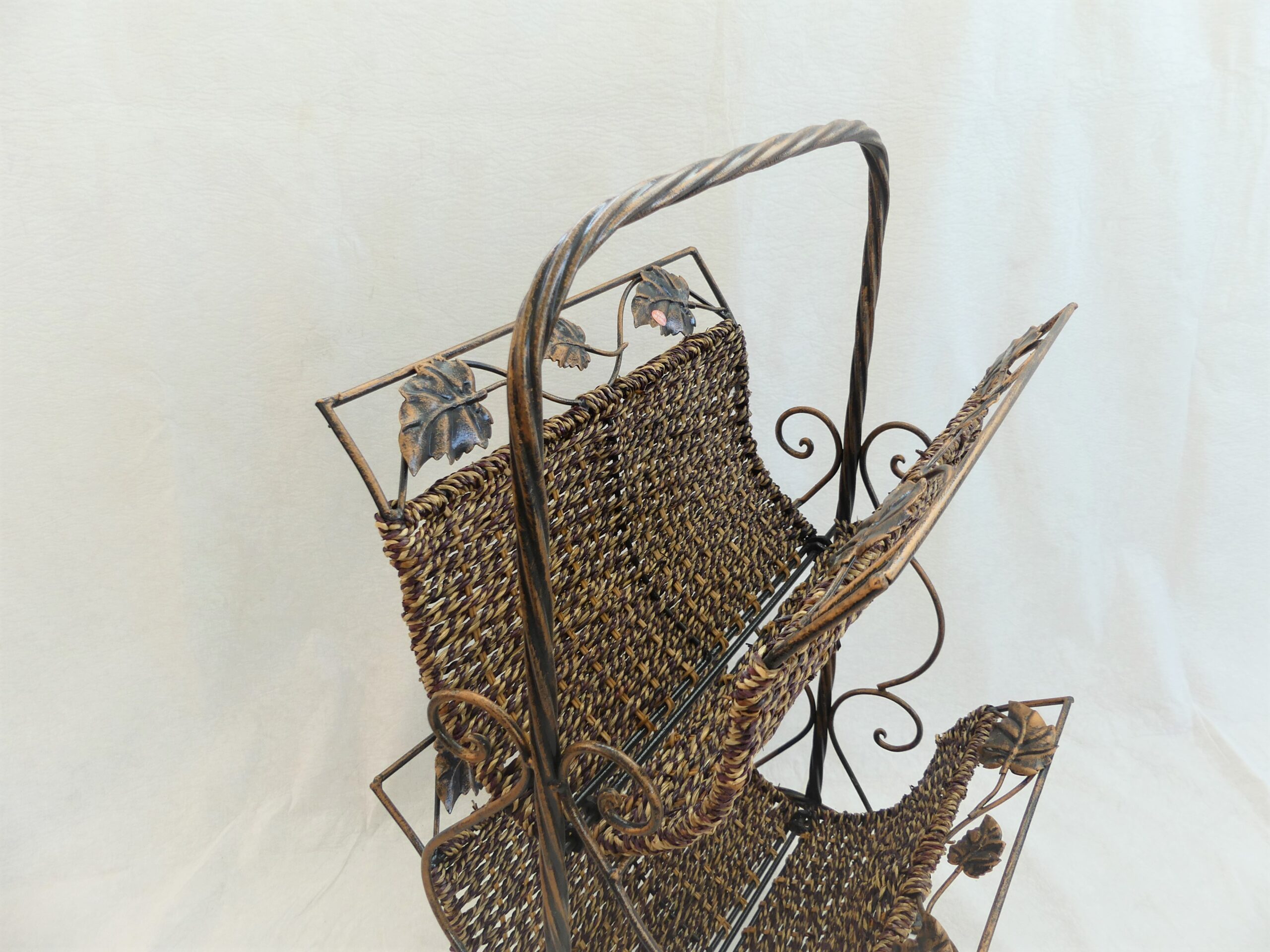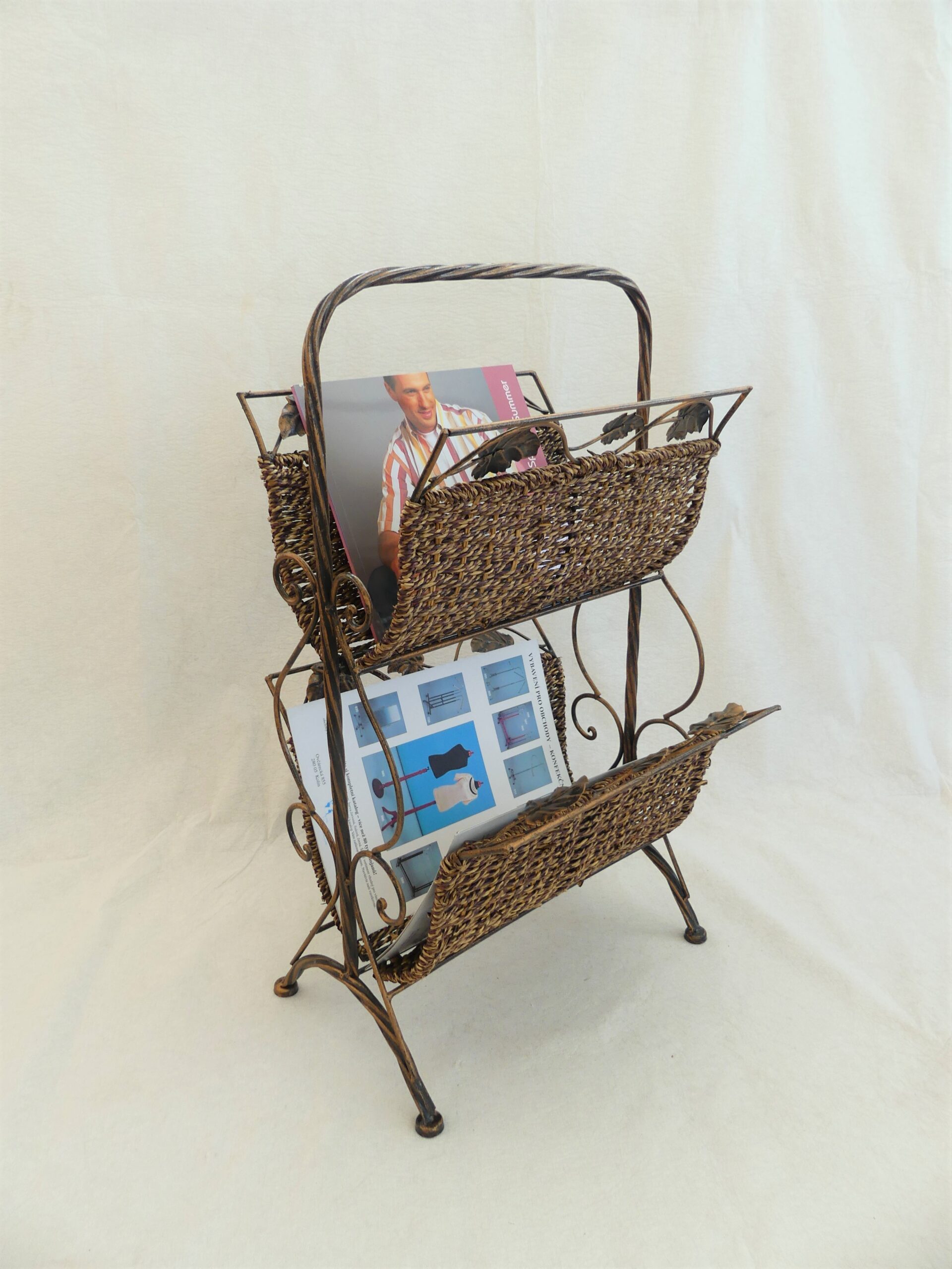 Ozdobný stojan na noviny – kombinace kov a proutí